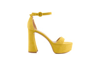 Gianvito Rossi Yellow Suede Platform Sandals. Yellow. Buckle fastening - Side. Does not come with - dustbag or box. EU 39.5 (UK 6.5, US 9.5. Insole: 9.9 in. Heel Height: Platform: 2 in Heel: 2.5 in.