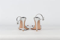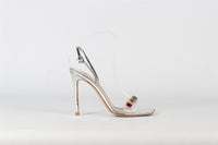 Gianvitto Rossi Crystal, Pvc And Patent Leather Sandals. Silver. Buckle fastening - Side. Does not come with - dustbag or box. EU 38 (UK 5, US 8). Insole: 9.5 in. Heel Height: 4.25 in.