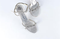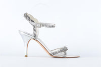 GINA SILVER CRYSTAL AND LEATHER SANDALS EU 38.5 UK 5.5 US 8.5