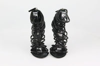 - These sandals by Giuseppe Zanotti in collaboration with Balmain are crafted in Italy from smooth black suede, these sandals have shimmering black crystal-encrusted ankle straps and are set on pin-thin heels.