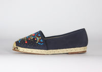 - Giuseppe Zanotti's hand-stitched suede espadrilles are among our favorite creations from the brand, they have been embellished with multicoloured gem and embroidered with geometric design.