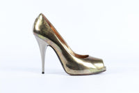 Giuseppe Zanotti Gold Leather Pumps. Gold. Slips on. EU 37 (UK 4, US 7). Insole: 9.5 in. Heel Height: 4.5 in.