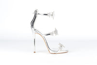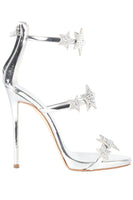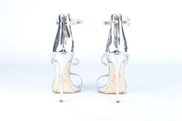 GIUSEPPE ZANOTTI SILVER CRYSTAL AND LEATHER SANDALS EU 39 UK 6 US 9