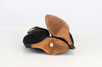 - Made from black suede with the brands iconic gold-tone shark tooth and wedge heel.