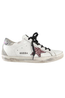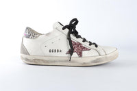 Golden Goose Deluxe Brand White Superstar Leather Sneakers. White. Lace up fastening - Front. Does not come with - dustbag or box. EU 38 (UK 5, US 8). Insole: 10 in. Heel Height: 1 in.