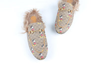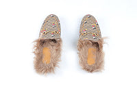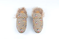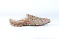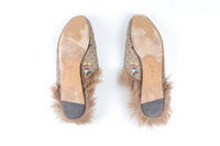 GUCCI + DISNEY BROWN PRINCETOWN CANVAS AND FAUX SHEARLING SLIPPERS EU 41 UK 8 US 11