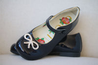 GUCCI GIRLS NAVY BLUE CRYSTAL BOW LEATHER SHOES EU 25 UK 8