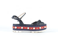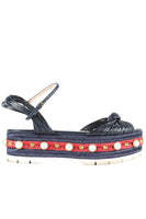 GUCCI NAVY LEATHER PLATFORM SANDALS EU 38.5 UK 5.5 US 8.5