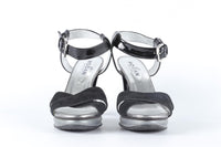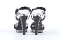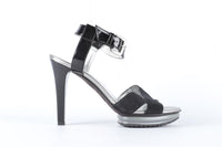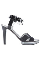 Hogan Black Patent Leather And Suede Sandals. Black. Buckle fastening - Side. Does not come with - dustbag or box. EU 37 (UK 4, US 7). Insole: 9.5 in. Heel Height: 4.5 in.