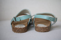 - Girls blue sandals by Il Gufo, with a moulded suede foot-bed and grained leather uppers .