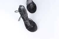 Isabel Marant Black Suede Sandals. Black. Tie fastening - Back. Does not come with - dustbag or box. EU 40 (UK 7, US 10). Insole: 10 in. Heel Height: 3.5 in.