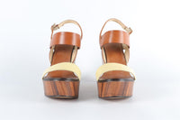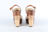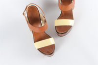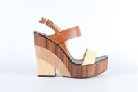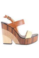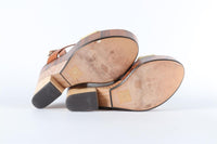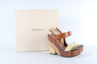 JIMMY CHOO BROWN LEATHER WEDGE SANDALS EU 38.5, UK 5.5, US 8.5