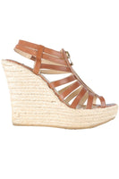 JIMMY CHOO BROWN LEATHER WEDGE SANDALS EU 38 UK 5 US 8