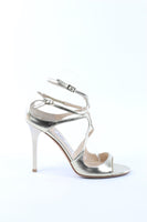 Jimmy Choo Gold Lance Leather Sandals. Gold. Buckle fastening - Side. Comes with - dustbag. EU 38 (UK 5, US 8). Insole: 10 in. Heel Height: 4.5 in.