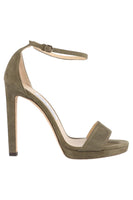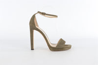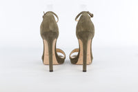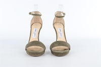 Jimmy Choo Green Suede Sandals. Green. Buckle fastening - Side. Does not come with - dustbag or box. EU 38 (UK 5, US 8). Insole: 9.9 in. Heel Height: 4.8 in.