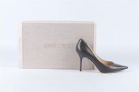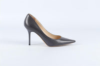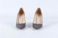 Jimmy Choo Grey Leather Pumps. Grey. Slips on. Does not come with - dustbag or box. EU 34 (UK 1, US 4). Insole: 8.75 in. Heel Height: 3.75 in.