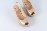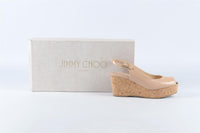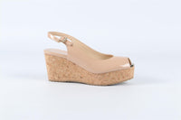 JIMMY CHOO NUDE PATENT LEATHER WEDGE SANDALS EU 34 UK 1 US 4