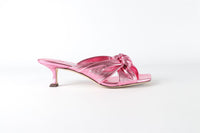 Jimmy Choo Pink Avenue Leather Sandals. Pink. Slips on. Comes with - dustbag and box. EU 38 (UK 5, US 8). Insole: 9.8 in. Heel Height: 2 in.