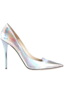 Jimmy Choo Silver Leather Pumps. Silver. Pull on. EU 39.5 (UK 6.5, US 9.5). Insole: 10.5 in. Heel Height: 5 in.