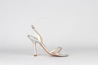 Jimmy Choo Silver Leather Sandals. Silver. Buckle fastening - Side. EU 35.5 (UK 2.5, US 5.5). Insole: 9 in. Heel Height: 4 in.