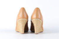 LANVIN TAN LEATHER WEDGE PUMPS EU 38 UK 5 US 8