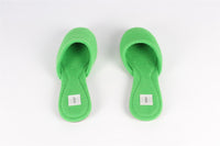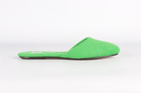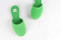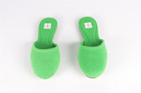 Leset Green Felt Slippers. Green. Slips on. EU 38 (UK 5, US 8). Insole: 10 in. Heel Height: 0.5 in.