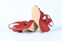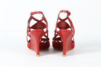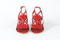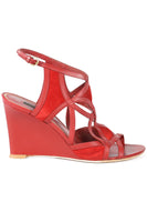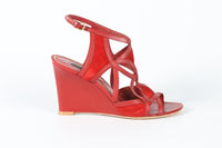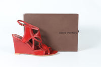 LOUIS VUITTON RED LEATHER AND SUEDE WEDGE SANDALS EU 39 UK 6 US 9