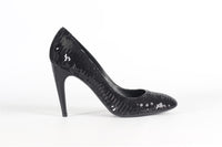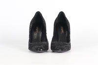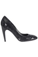 Louis Vuitton Sequin And Leather Pumps. Black. Slips on. Does not come with - dustbag or box. EU 38 (UK 5, US 8). Insole: 9.6 in. Heel Height: 3.3 in.