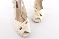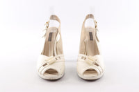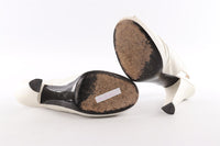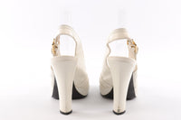 Louis Vuitton White Leather Sandals. White. Buckle fastening - Side. Does not come with - dustbag or box. EU 41 (UK 7, US 11). Insole: 12 in. Heel Height: 6 in.