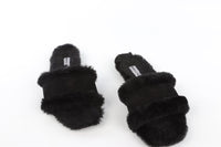 MANOLO BLAHNIK BLACK SHEARLING SLIDES EU 38 UK 5 US 8