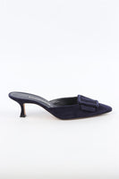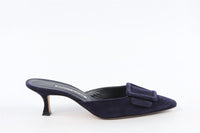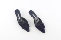 MANOLO BLAHNIK MAYSALE NAVY SUEDE MULES EU 38 UK 5 US 8