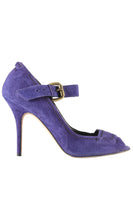 Manolo Blahnik Purple Suede Pumps. Purple. Buckle fastening - Side. Does not come with - dustbag or box. EU 39.5 (UK 6.5, US 9.5). Insole: 10.25 in. Heel Height: 4 in.