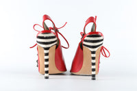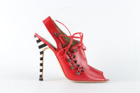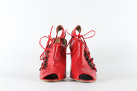 Manolo Blahnik Red Leather Sandals. Lace up fastening - Front. Does not come with - dustbag or box. EU 40 (UK 7, US 10). Insole: 10.25 in. Heel Height: 5 in.
