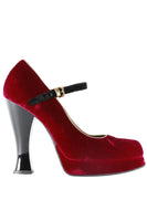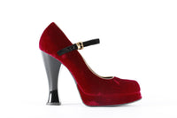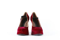 Marni Red Velvet Platform Pumps. Red. Buckle fastening - Side. Does not come with - dustbag or box. EU 40 (UK 7, US 10). Insole: 10.25 in. Heel Height: 5 in.