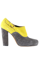 Marni Yellow And Grey Suede Ankle Boots. Yellow & Grey. Buckle fastening - Side. Does not come with - dustbag or box. EU 39 (UK 6, US 9). Insole: 10.5 in. Heel Height: 4 in.
