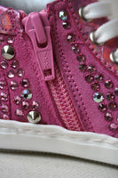 - Made in Italy, these sophisticated pink leather sneakers are covered with sparkling diamante crystals allover.