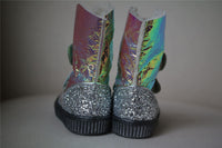 - Designed for the cold weather, these younger girls sheepskin lined boots, are sparkly and stylish.