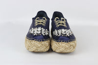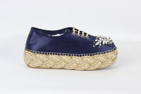 MIU MIU CRYSTAL EMBELLISHED SATIN PLATFORM ESPADRILLES EU 38.5 UK 5.5 US 8.5