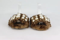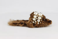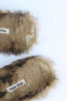 MIU MIU EMBELLISHED LEOPARD PRINT FUR SLIDES EU 37 UK 4 US 7