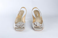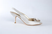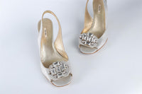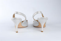 MIU MIU SILVER CRYSTAL AND LEATHER SLINGBACK SANDALS EU 36.5 UK 3.5 US 6.5
