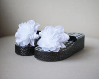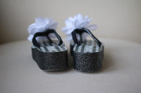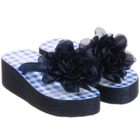 - Girls blue glitter platform flip-flops by Monnalisa. Made from thick, comfortable foam, they have super soft, padded faux suede straps and silky flowers.