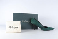 Mulberry Green Suede Pumps. Green. Slips on. Comes with - dustbag and box. EU 40 (UK 7, US 10). Insole: 10 in. Heel Height: 3 in.