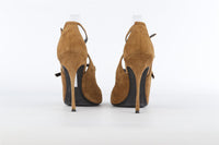 Nicholas Kirkwood Brown Suede Sandals. Brown. Buckle fastening - Side. Does not come with - dustbag or box. EU 38.5 (UK 5.5, US 8.5). Insole: 9.9 in. Heel Height: 4.3 in.