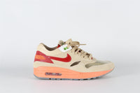 Nike Beige Air Max 1 Clot Kiss Of Death Sneakers. Biege and Orange. Lace up fastening - Front. EU 38.5 (UK 5.5, US 6). Insole: 10 in. Heel Height: 1.5 in.