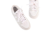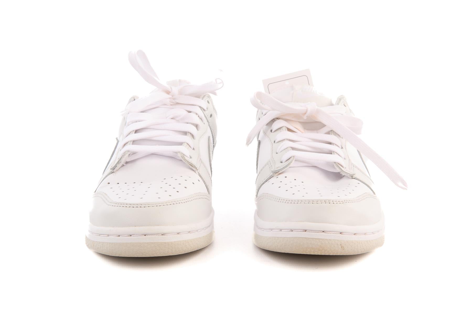 Nike Grey Leather Sneakers. Grey and white. Lace up fastening - Front. Does not come with - dustbag or box. EU 38.5 (UK 5, US 7.5). Insole: 9.5 in. Heel Height: 1.25 in.
