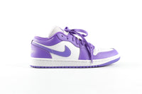 Nike Purple Air Jordan 1 Psychic Purple Sneakers. Purple. Lace up fastening - Front. Does not come with - dustbag or box. UK 5.5 (US 8, EU 39). Insole: 10 in. Heel Height: 1 in.