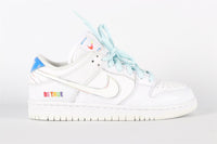 Nike White Dunk Be True Sneakers. White. Lace up fastening - Front. Does not come with - dustbag or box. UK 5.5 (EU 38.5, US 6). Insole: 10 in. Heel Height: 1.5 in.