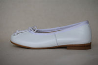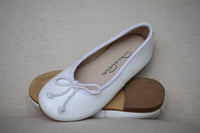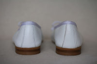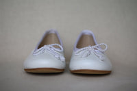 - Adorable white ballet flats with a padded sole and rope bow.