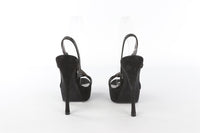 Philipp Plein Black Suede Sandals. Black. Pull on. Does not come with - dustbag or box. EU 37 (UK 4, US 7). Insole: 11.5 in. Heel Height: 7 in.