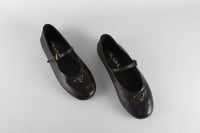 Prada Black Leather Ballet Flats. Black. Buckle fastening - Side. EU 36 (UK 3.5, US 6). Insole: 9 in. Heel Height: 0.5 in.